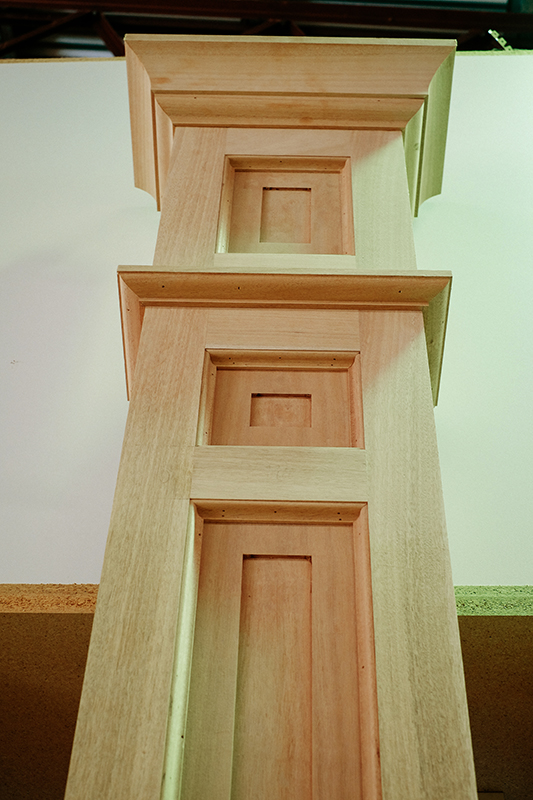 This project was challenging, the carvings were of a very old style, which took much skill and time to recreate, the Crown mouldings were a large mould which we would have to make new cutters for. The timber used had to match the old sections.