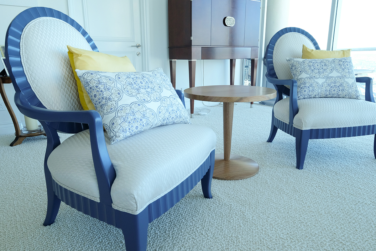 Our client wanted their well loved furniture restored to bring new life into their living rooms. We carefully rechromed, repolished, reparied and age-painted and varnished to remove the wear and tear and revive and refresh creating a fresh feel in the apartment.